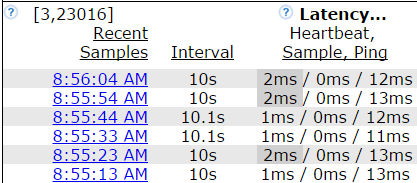 "Ping-only sampling -- Ping OK", as well as correctly showing