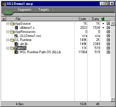 Open the project ulldemo1.mcp in CodeWarrior IDE, choose